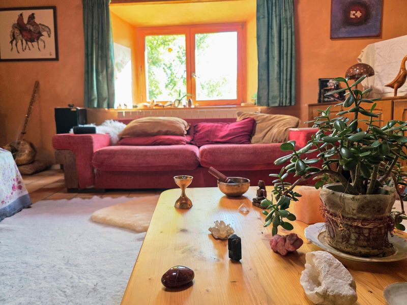 La maison de l’Oasis de l’Âme vous accueille dans un cadre simple et authentique. Trois chambres lumineuses, une vaste cuisine conviviale, un salon bibliothèque et plusieurs terrasses ouvertes sur la montagne offrent des espaces de repos, de partage et de contemplation. Chaque recoin a été pensé pour favoriser le calme, la douceur et la reconnexion à soi.
