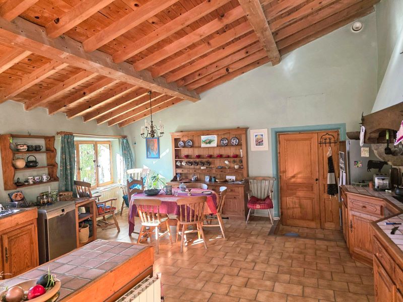 Une vaste cuisine pour des temps de partages autours des repas, au coin du poêle, devant la fenêtre aux oiseaux…