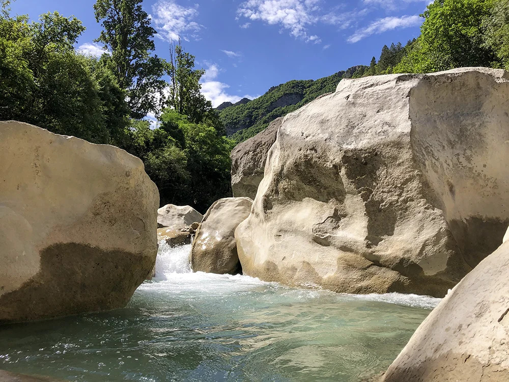 Ici, tout semble vibrer avec lenteur: la lumière sur les reliefs marneux, les sentiers qui serpentent jusqu’aux crêtes, les murmures des gorges et des cascades.